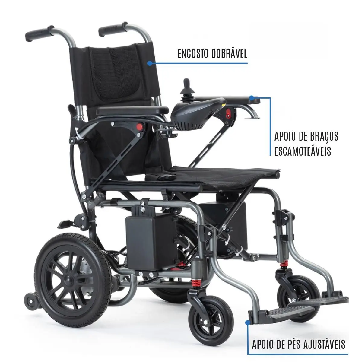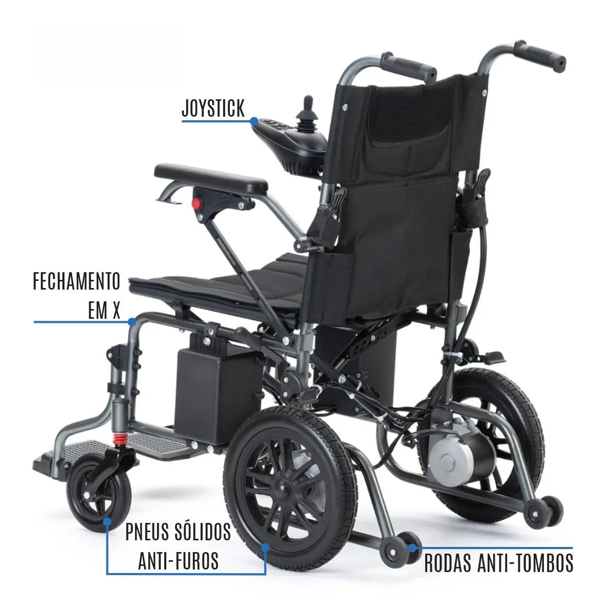 Dobrável: cabe no porta-malas e facilita o transporte Leve e compacta: apenas 29 kg (sem bateria) Especificações Técnicas: Velocidade máxima: 6 km/h (frente) | 3 km/h (ré) Controle: Joystick 360